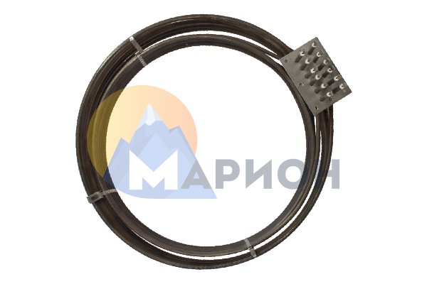 ТЭН собран по индивидуальному заказу из шести отдельных нагревательных элементов. Развернутая длина каждого нагревателя на внешнем кольце — 3540 мм, на внутреннем кольце — 2050 мм. Диаметр трубок — 8.5 мм. Рабочее напряжение нагревателя — 230 В, мощность — 4.5 кВт. Нагреватели собраны воедино с помощью монтажной пластины. От соприкосновения во время работы нагреватели защищены распорками из мягкого метала.